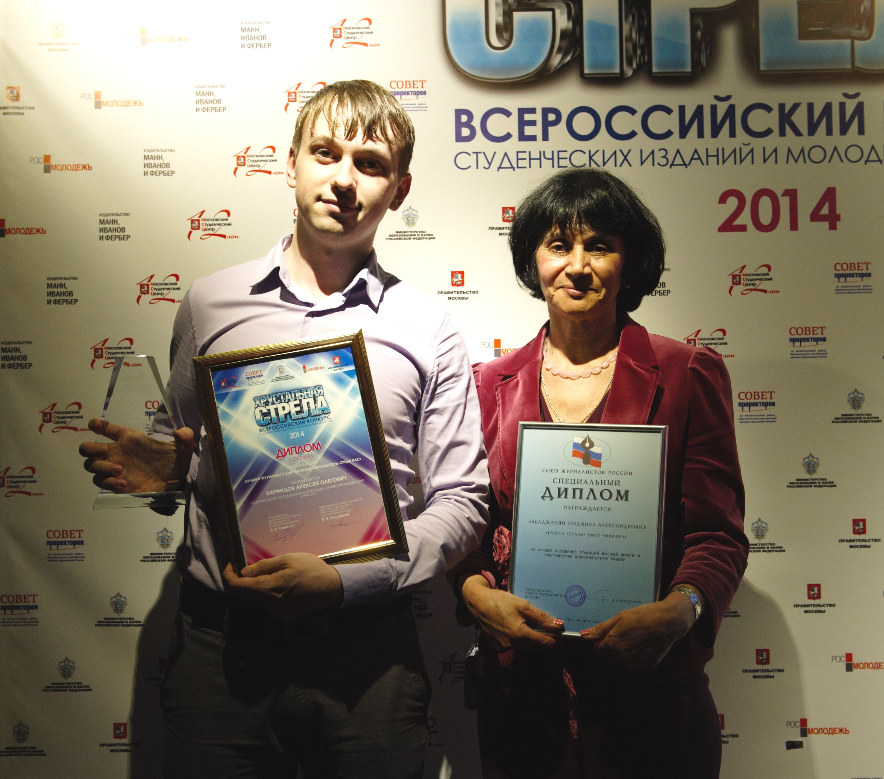 5 дипломов Всероссийского конкурса студенческих изданий и молодых журналистов «Хрустальная стрела» — таков замечательный результат участия в этом конкурсе редакций газет НИТУ «МИСиС» «Сталь» и «Горняцкая смена».Состязание для представителей вузовской прессы «Хрустальная стрела» учреждено Московским студенческим центром и Советом проректоров по воспитательной работе вузов России при поддержке Правительства Москвы, Министерства образования и науки РФ, а также Федерального агентства по делам молодежи.