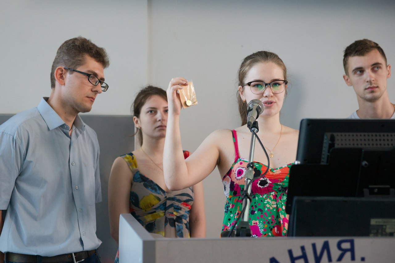 Презентация проектов проходила на английском языке. По мнению ребят, это было самое легкое условие, отчетной конференции. Сложнее было как можно понятнее рассказать о научно-практической составляющей проекта, убедить публику в важности созданной разработки. Всего было представлено 9 проектов, все они очень разные, отмечают участники курса, но очень интересные. Были отмечены функциональные покрытия на основе нанопорошка кобальта, металлизированные обои, особенно гостям конференции запомнился проект по ускоренной засолке огурцов с помощью электрофореза, он был продемонстрирован прямо во время презентации.