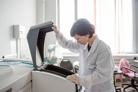 Дмитрий Московских, директор НИЦ «Конструкционные керамические наноматериалы» стоит в лаборатории около оборудованияДмитрий Московских, директор НИЦ «Конструкционные керамические наноматериалы» стоит в лаборатории около оборудования