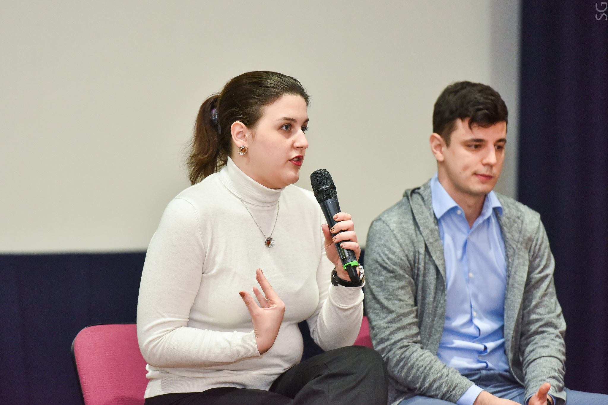 После торжественной церемонии вручения сертификатов Билл МакМэйнс, преподаватель английского языка и эксперт в области коммуникации провел панельную дискуссию с первыми выпускниками программы Touchstone@MISIS, где они рассказали, как английский язык помогает им в работе и повседневной жизни.