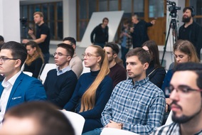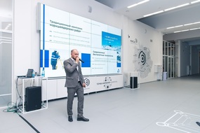 Вторым спикером стал сооснователь и генеральный директор компании «АЗОТТЕХ» Виталий Тихонов. На протяжении 11 лет компания создаёт и применяет высокотехнологичные решения во всех отраслях горнодобывающей промышленности для крупнейших предприятий России. Он рассказал студентам о технологиях «Индустрии 4.0» в сегменте upstream, горнодобывающей отрасли, исторических парадоксах, беспилотной технике и других передовых разработках в области оборудования для ведения буровзрывных работ.