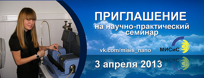 Кафедры Функциональных наносистем и высокотемпературных материалов и Защиты металлов и технологии поверхности НИТУ «МИСиС» приглашают старшеклассников на научно-практический семинар, который состоится 3 апреля 2013 г. по адресу: