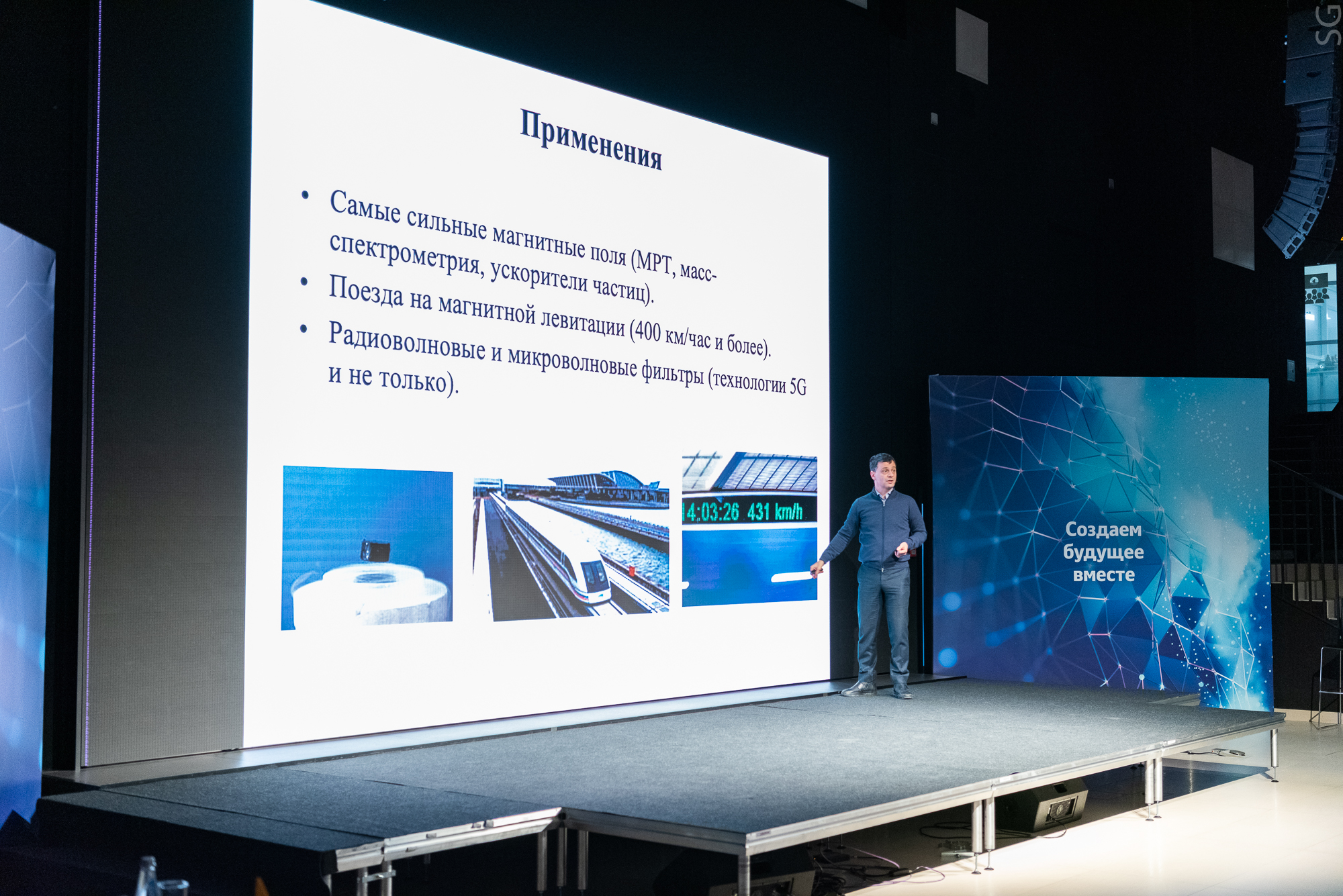 Проект стартовал с лекции д.ф.-м.н., профессора «Сколтеха» и НИТУ «МИСиС», Артема Оганова, который рассказал о сверхпроводимости — явлении, открытом в начале XX века, и способствовавшем множеству научных прорывов. Профессор Оганов упомянул ученых, внесших особый вклад в развитие теории сверхпроводимости. По словам спикера, наиболее интересны для практических применений сверхпроводники второго типа, открытые Алексеем Абрикосовым, выдающимся физиком-теоретиком, академиком РАН, лауреатом Нобелевской премии по физике 2003 года, возглавлявшим кафедру теоретической физики в МИСиС с 1976 по 1991 годы.