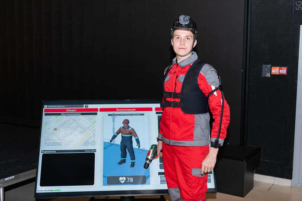 Коллектив сотрудников кафедры Автоматизированных систем управления НИТУ «МИСиС» представил решение — «умный» костюм для строителей, оснащенный комплексом сенсорных устройств для регистрации действий и построения 3D-моделей работников в виртуальной технологической среде. Сенсорное оборудование, размещаемое на костюме, будет собирать такую информацию, как изменение положений частей тела в пространстве, общее местоположение работника, а также сопутствующие биометрические измерения состояния работника.