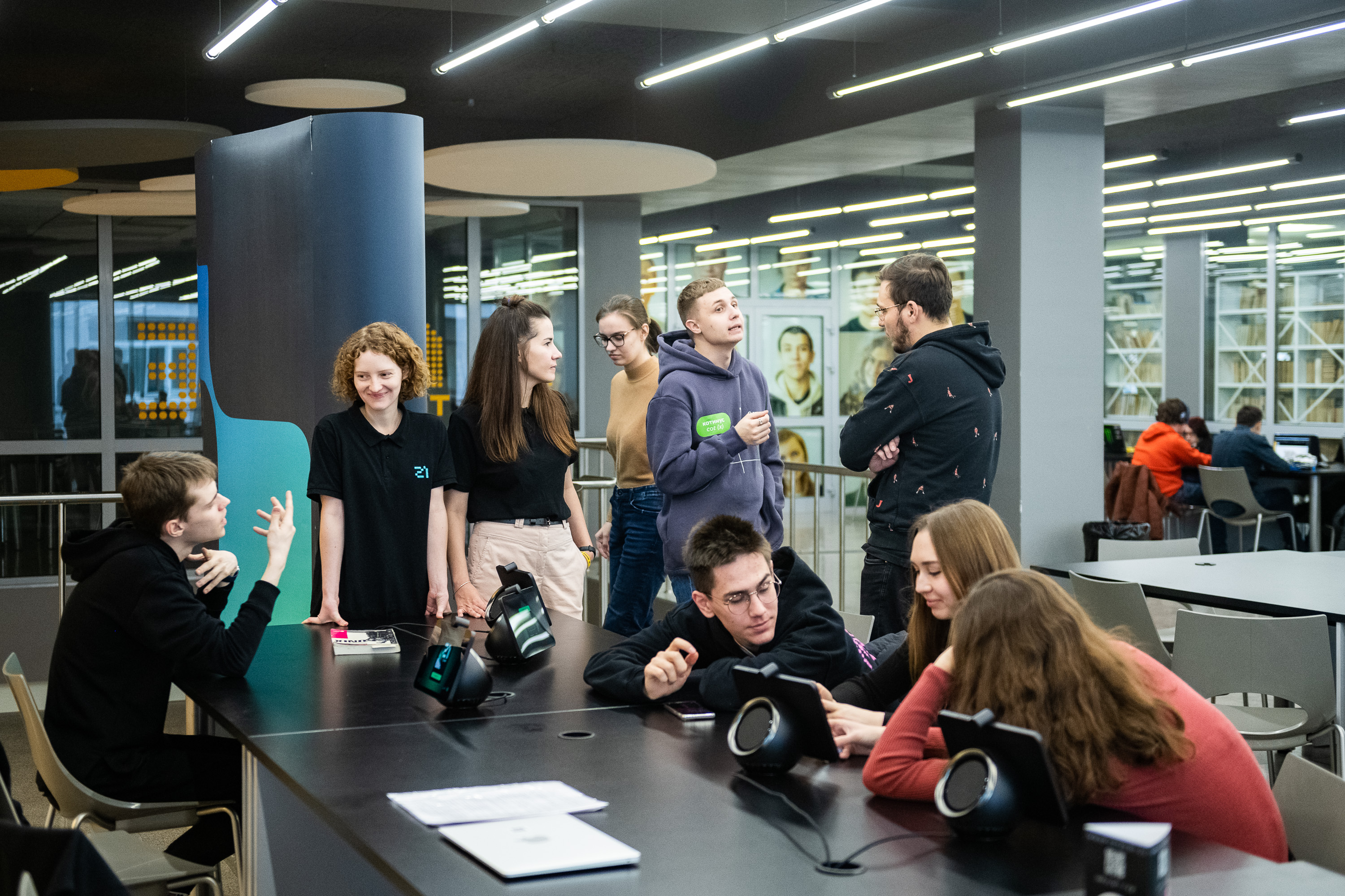 Более 100 студентов Университета МИСИС приняли участие в демо-дне «Школы 21», который прошел на площадке университета: прошли компьютерную игру на развитие алгоритмического мышления на устройстве SberPortal, познакомились с тем, как проходят отборочные этапы при поступлении в Школу, смогли задать сотрудникам все интересующие вопросы.