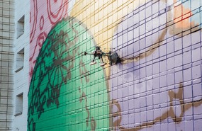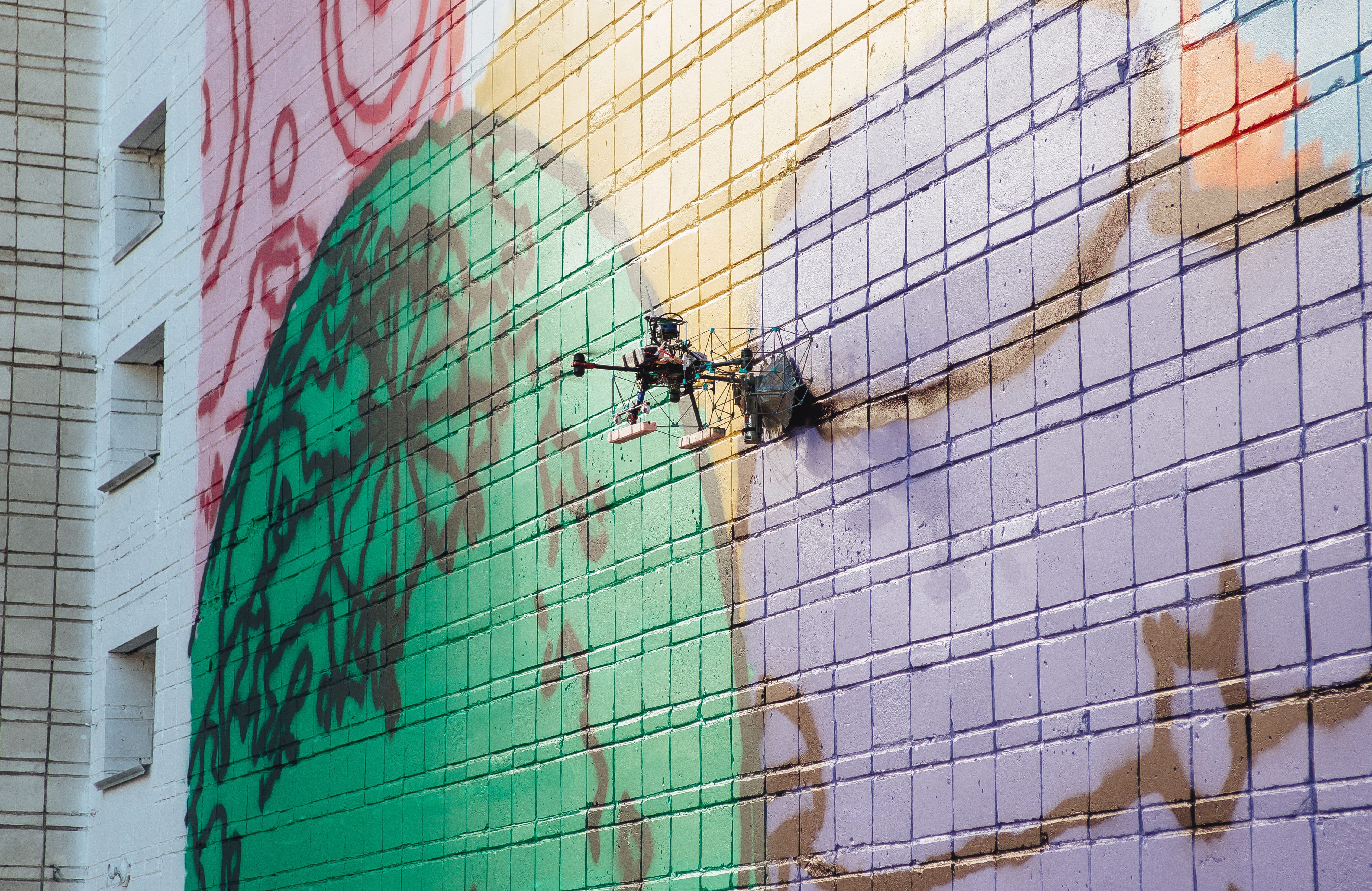 В большой команде разработчиков дрона-художника участвовали студенты и выпускники НИТУ МИСИС. С помощью разработанного дрона был создан мурал современного художника Миши Most на стене корпуса Новосибирского государственного технического университета площадью порядка 300 квадратных метров. Над арт-объектом беспилотник работал 27 дней в рамках ежегодного проектно-образовательного интенсива «Архипелаг-2023». Ранее изображения такой площади и сложности не создавались с помощью дронов.