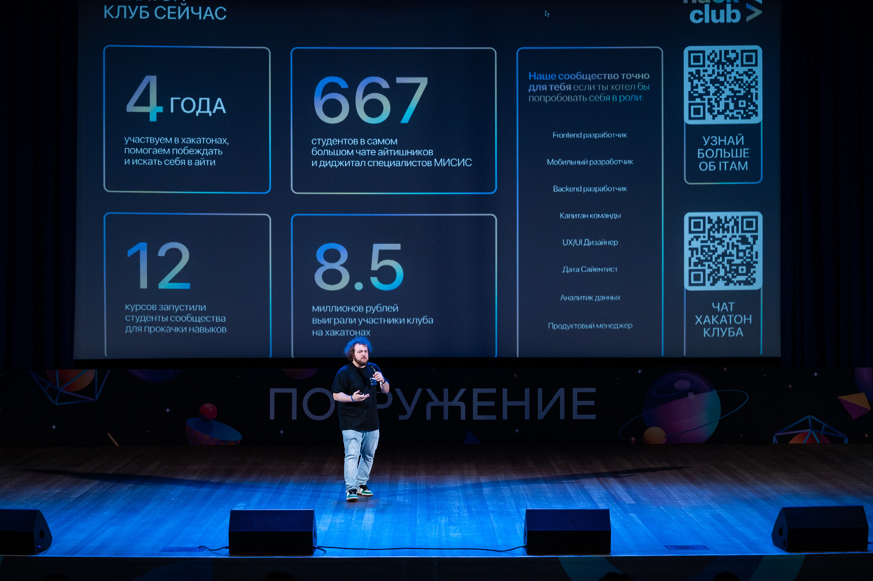 Открыл фестиваль традиционный день института, где представители студенческих объединений презентовали свои клубы и проекты для первокурсников, а представители бизнес-партнеров, таких как VK Образование и Цифра в формате TED-выступления рассказали о совместных проектах и возможностях, которые предлагают компании студентам НИТУ МИСИС.