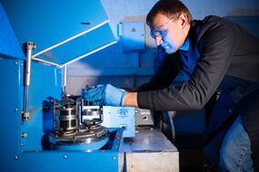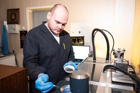 Дмитрий Московских, директор НИЦ «Конструкционные керамические наноматериалы» стоит в лаборатории около оборудованияДмитрий Московских, директор НИЦ «Конструкционные керамические наноматериалы» стоит в лаборатории около оборудования