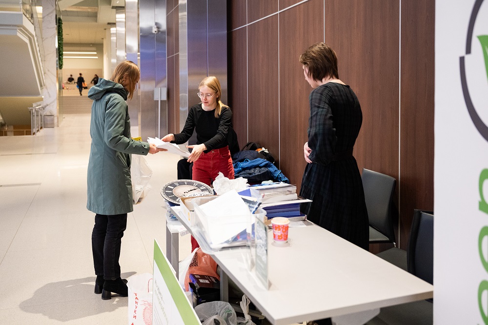 В Университете МИСИС прошла традиционная акция «Из офиса — на переработку» от Экологического клуба «Green MISIS». Студенты и сотрудники университета принесли в пункт сбора макулатуру, канцелярию, вышедшую из строя офисную и бытовую технику, батарейки, аккумуляторы, и т.д.