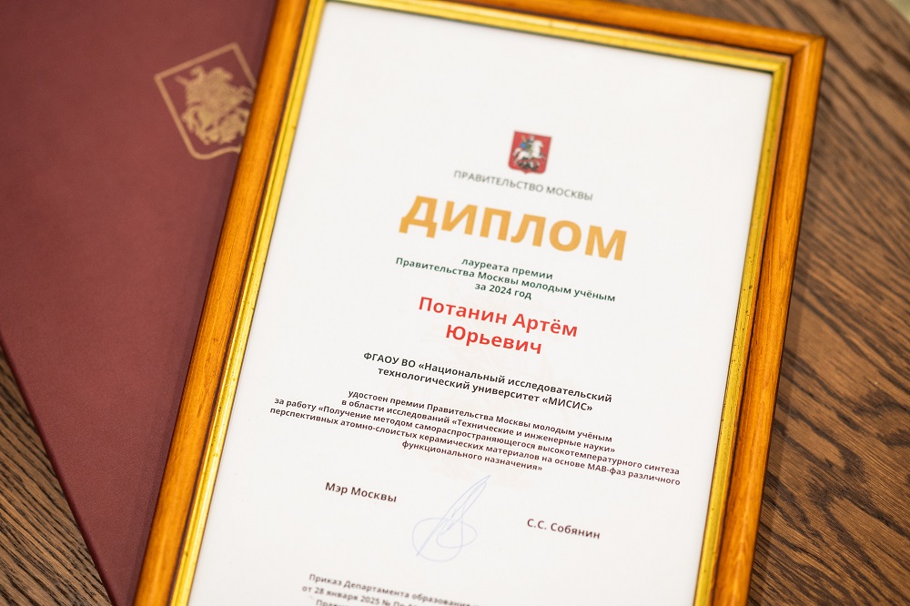 Исследователь НИТУ МИСИС вошел в список 50 победителей ежегодного конкурса на соискание премий Правительства Москвы молодым ученым. В номинации «Технические и инженерные науки» лауреатом стал к.т.н. Артём Потанин. Ученый продемонстрировал выдающиеся результаты в научных исследованиях, содействующих повышению эффективности деятельности в реальном секторе экономики и социальной сфере Москвы. Вознаграждение составило 2 млн рублей.