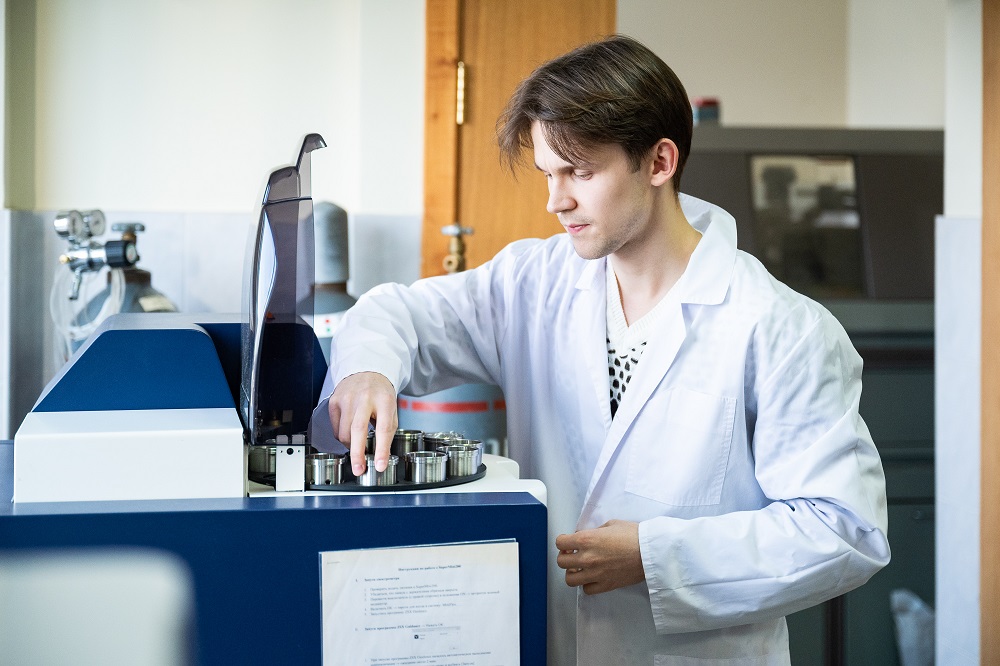 Дмитрий Московских, директор НИЦ «Конструкционные керамические наноматериалы» стоит в лаборатории около оборудованияДмитрий Московских, директор НИЦ «Конструкционные керамические наноматериалы» стоит в лаборатории около оборудования
