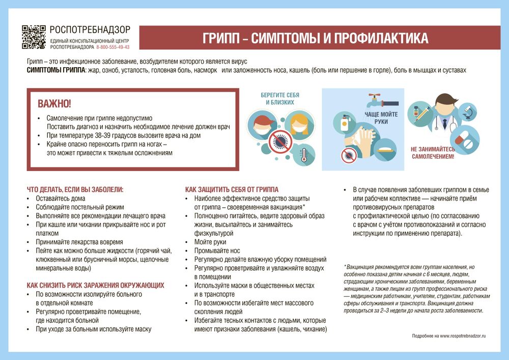 • Сделайте прививку против гриппа до начала эпидемического сезона.