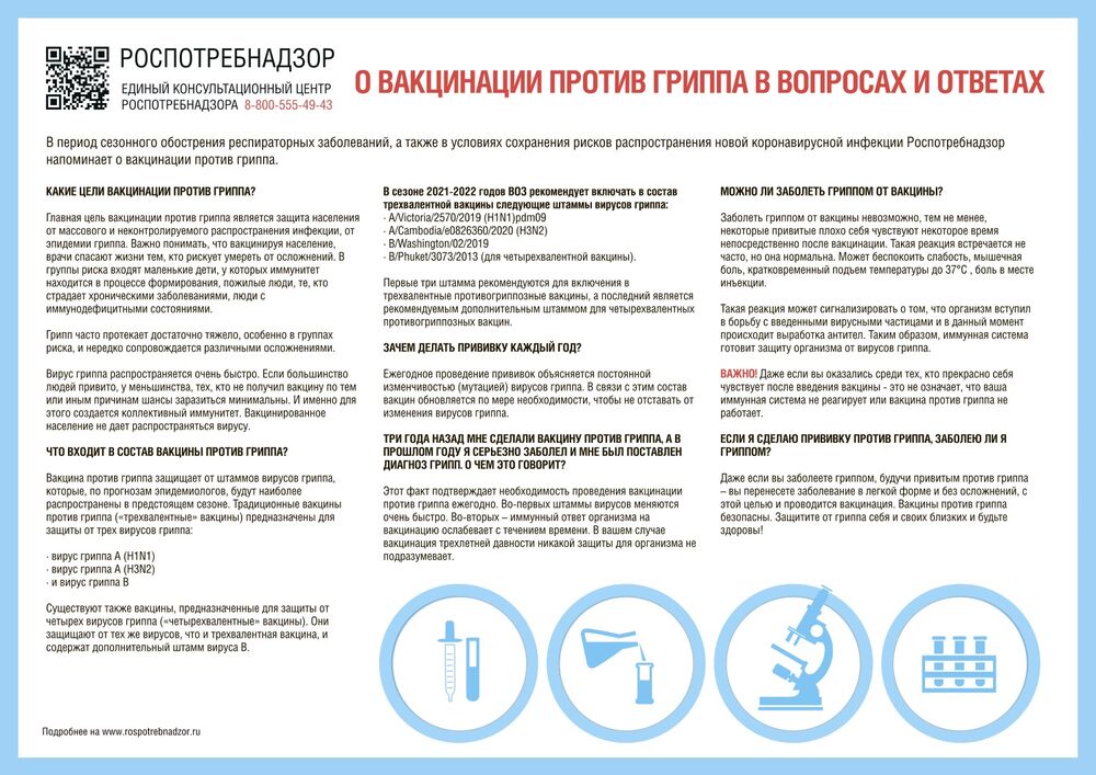 Ежегодная вакцинация — наиболее эффективная мера профилактики гриппа.