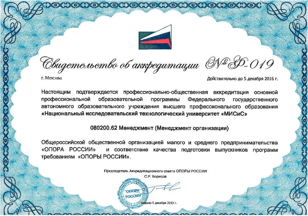 - Свидетельство о соответствии программы дисциплины «Управление проектами» требованиям, предъявляемым Международной ассоциацией по управлению проектами (IPMA) и Национальной ассоциацией управления проектами «СОВНЕТ» (ICB.3.0, HTK версия 3.0) (рег. номер № П-004 от 12.12.2011)